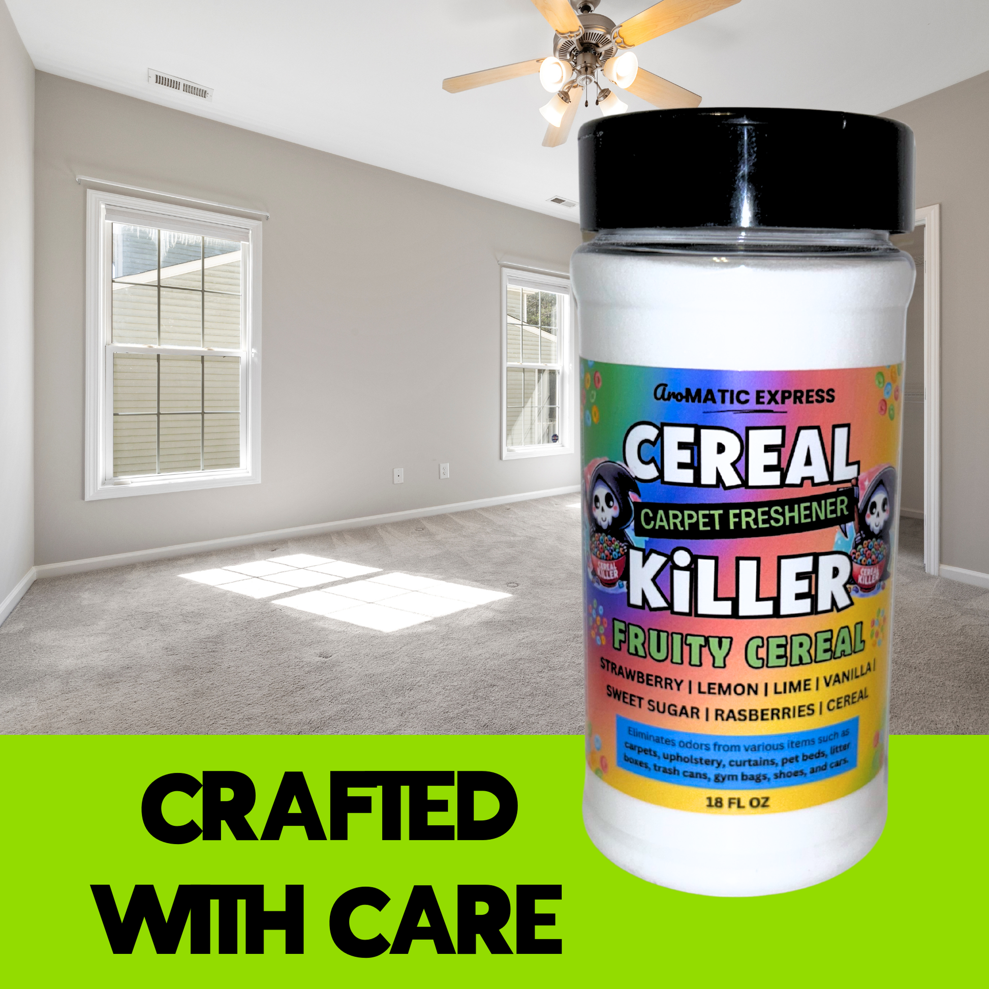 Cereal Killer Fruity Cereal Carpet Freshener | 18oz Sprinkle Jar | Odor Eliminator Powder