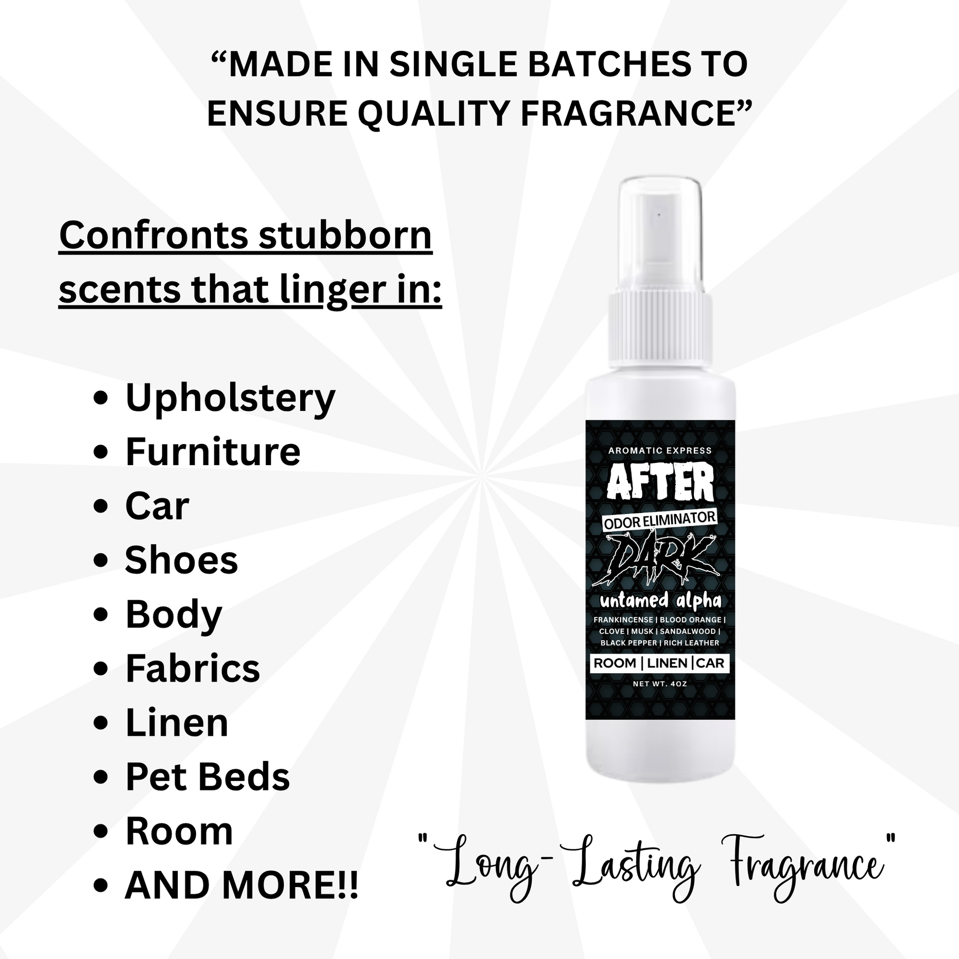 With just a spritz, enjoy a bold yet safe fragrance anywhere you need it—without a trace of harsh chemicals. Breathe deep, because clean, strong scent has never felt this pure..